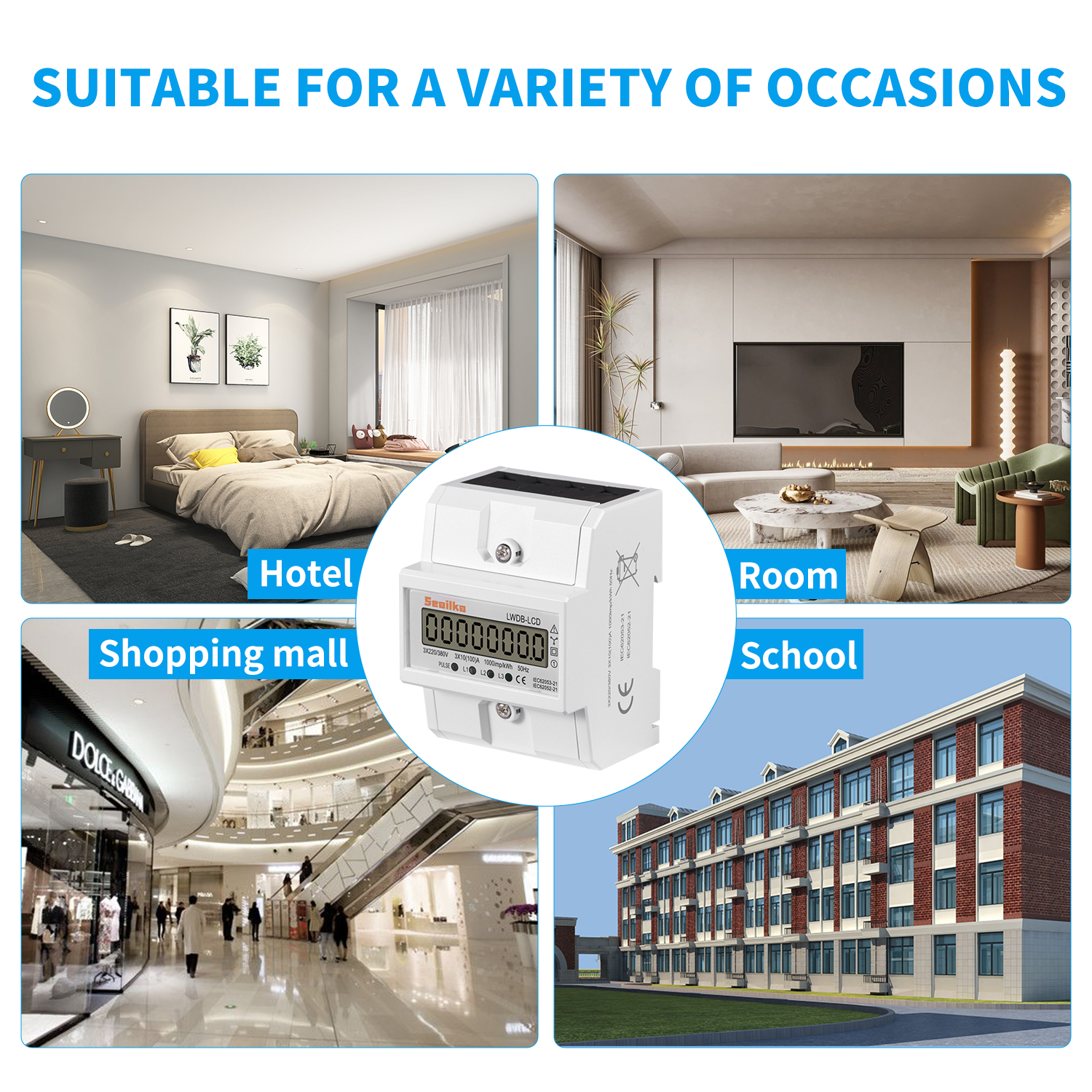 Dieser Energiezähler kann positive Wirkenergie bei der Messung der elektrischen Energie messen, die durch den LCD-Bildschirm klar angezeigt wird. Kleine Größe, geringes Gewicht, 35 mm DIN-Schienenmontage. Es hat einen geringen Stromverbrauch, hohe Präzision.