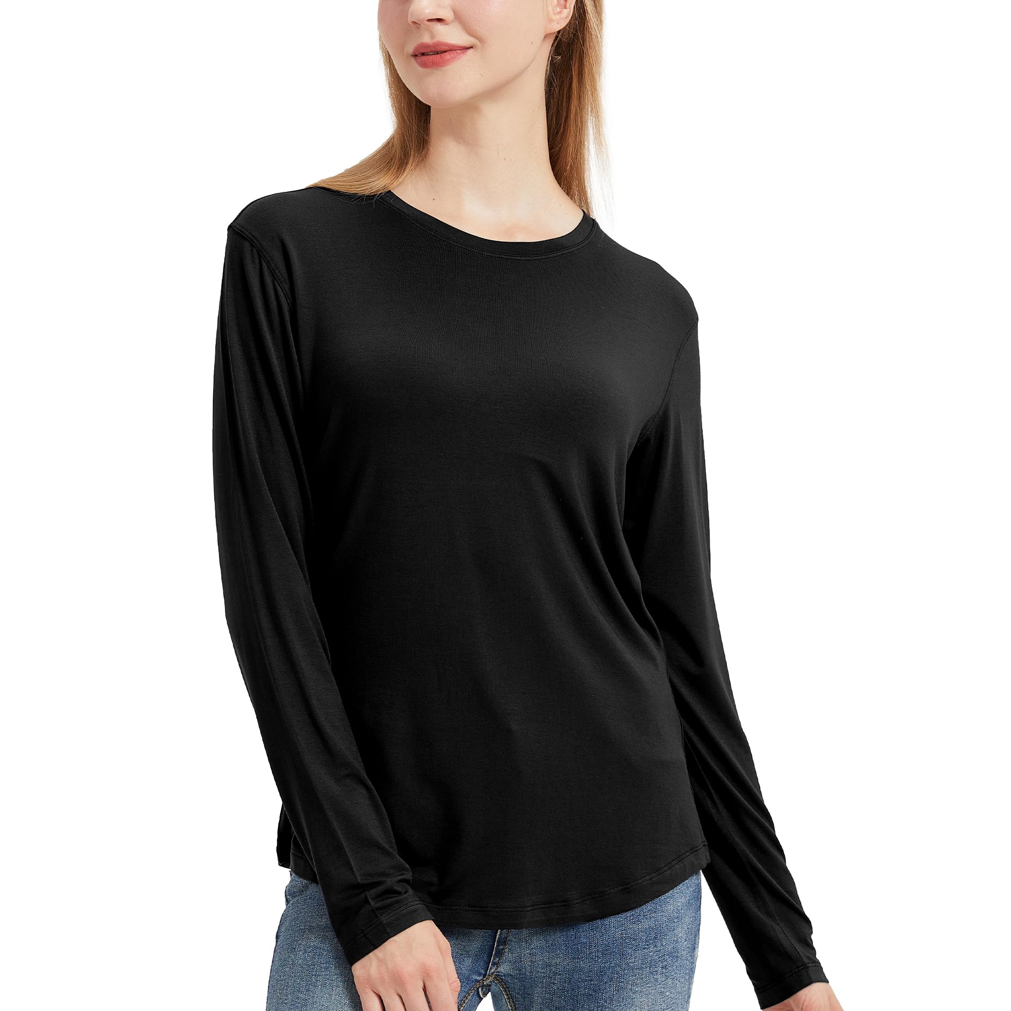 netdraw Women's Lightweight Bamboo Viscose T-Shirt Medium, Long Sleeve Black