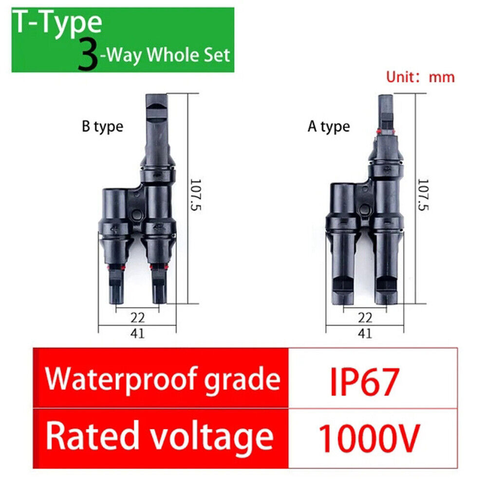 T Typ 3 Zweig Solarpanel Kabel Photovoltaik-Steckverbinder MFFF FMMM IP67