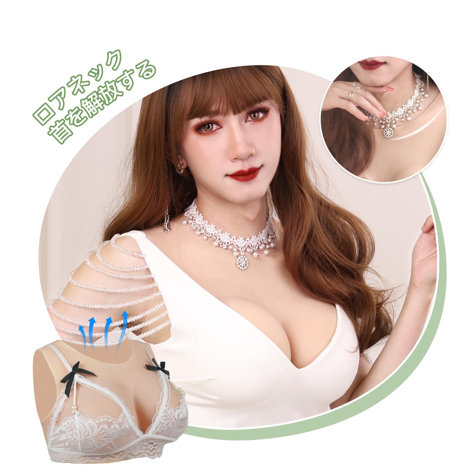SILI FEELER: Thin and lightweight silicone bust, easy to put on and take off, with thin edges that blend seamlessly with the skin. The high-neck design hides the throat and is discreet from behind, allowing for perfect representation of various outfits, including backless styles.