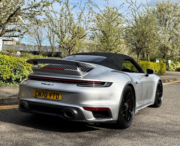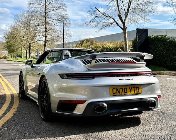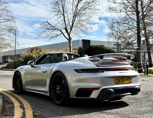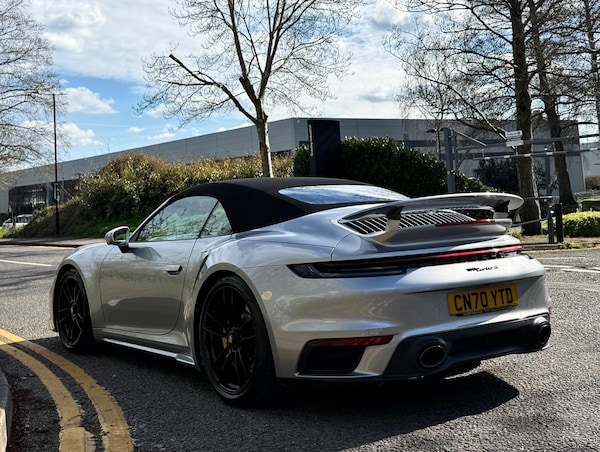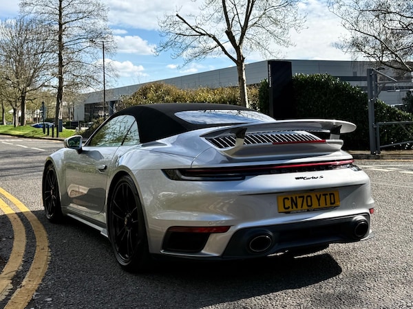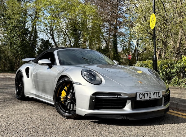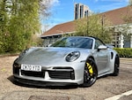** VIEWING VIA APPOINTMENT ONLY ** . . MEGA SPEC . PORSCHE WARRANTY UNTIL OCTOBER 2027 . FULL PPF . SPORTS EXHAUST . FRONT AXLE LIFT . PRIVACY GLASS . 20/21 CENTRE LOCK ALLOY WHEELS . PORSCHE CERAMIC COMPOSITE BRAKES PCCB WITH YELLOW CALIPERS . PORSCHE DYNAMIC CHASSIS PDCC . PORSCHE ACTIVE SUSPENSION PASM . FRONT HEATED & COOLED SEATS . BURMESTER SOUND SYSTEM . SPORTS CHRONO PACKAGE . APPLE CARPLAY . 8 SPEED PDK GEARBOX . ADAPTIVE SPORTS SEATS . SAT NAV . DAB . ACTIVE SPOILERS . CRYPTO PAYMENTS WELCOMEThis 2020 Porsche 911 T 992 Turbo S is a remarkable example of German engineering, boasting a powerful 3.7 litre petrol engine and a sophisticated four wheel drive system. Finished in a striking colour and featuring a Euro 6 emission class, this model is equipped with a premium Burmester High End Surround Sound System, ensuring an exceptional audio experience. For convenience and safety, it includes ParkAssist with a 360 degree camera and front and rear sensors. Further enhancing its distinctive appearance are the rear side air intakes painted in gloss black and black tailpipes on the sports exhaust system, complemented by protective front foil.The performance of this Porsche 911 Turbo S is truly outstanding, with an acceleration of 0 to 62 miles per hour achieved in just 2.8 seconds. This impressive speed demonstrates its superiority over many other vehicles in its class. The inclusion of a sports exhaust system further refines the driving dynamics, offering a more engaging and exhilarating sound. This 992 Turbo S represents a compelling choice for those seeking a blend of luxury, cutting edge technology, and exhilarating performance.
