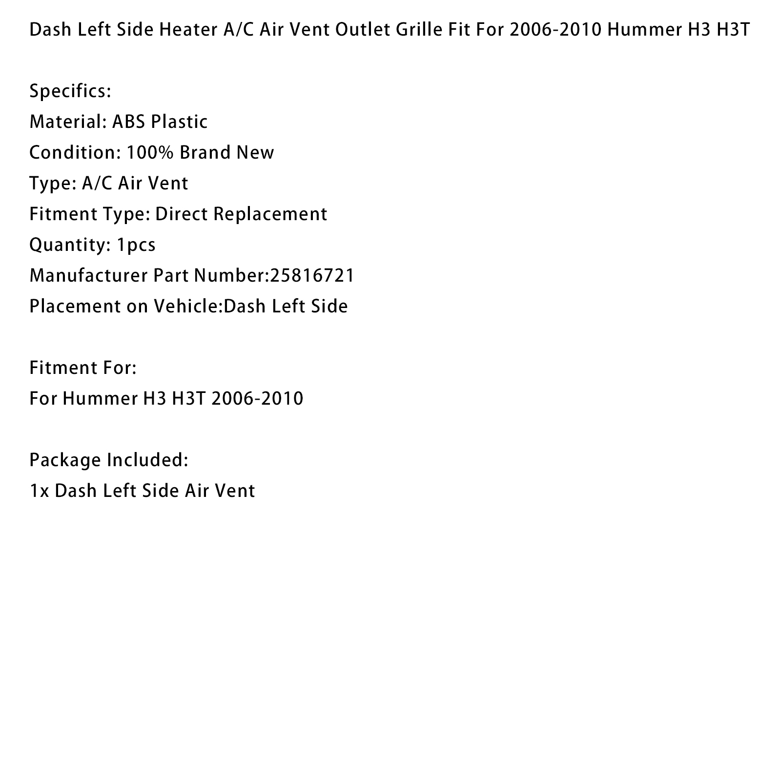 Dash Left Side Heater A/C Air Vent Outlet Grille Fit For 2006-2010 Hummer H3 H3T