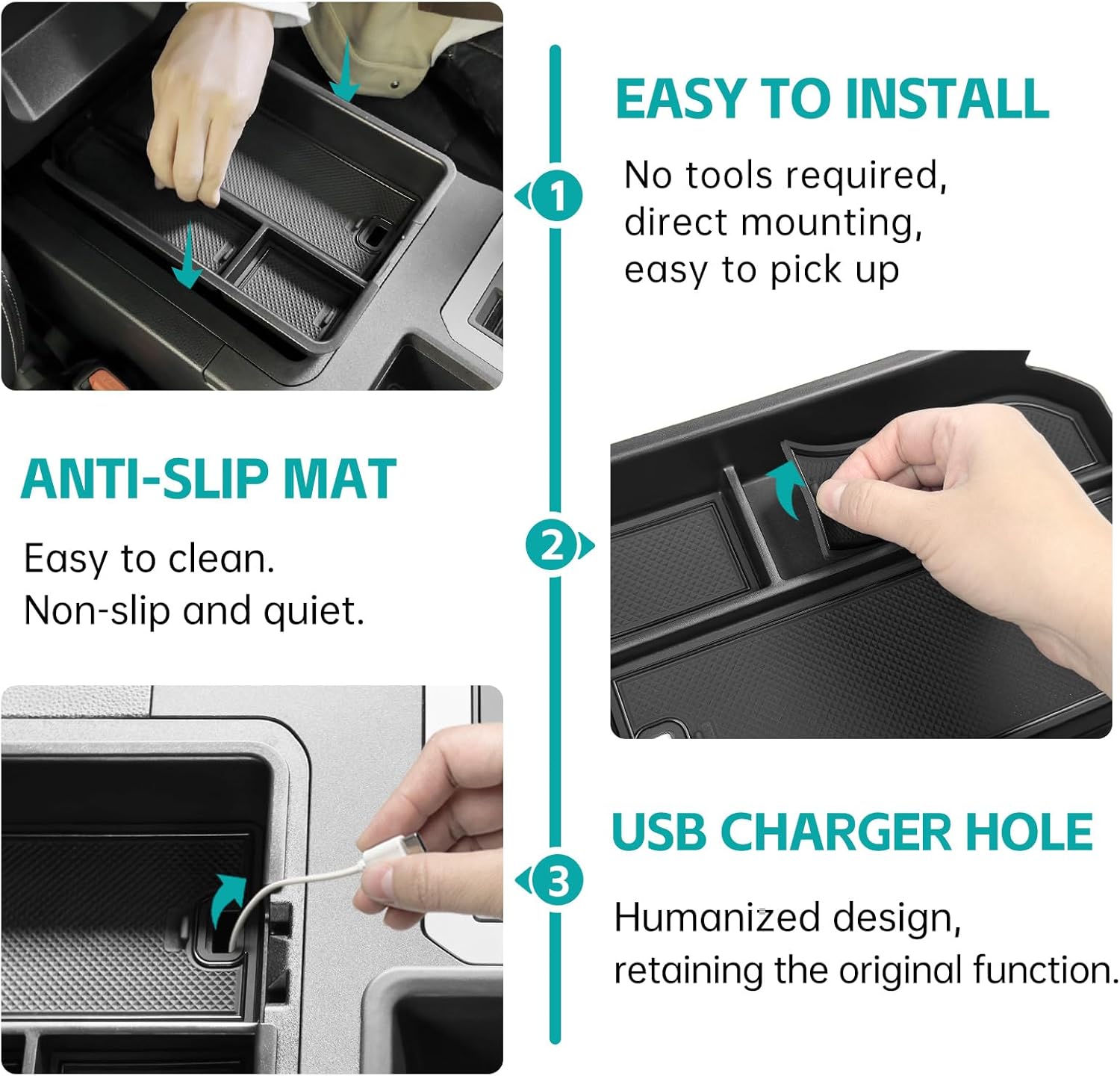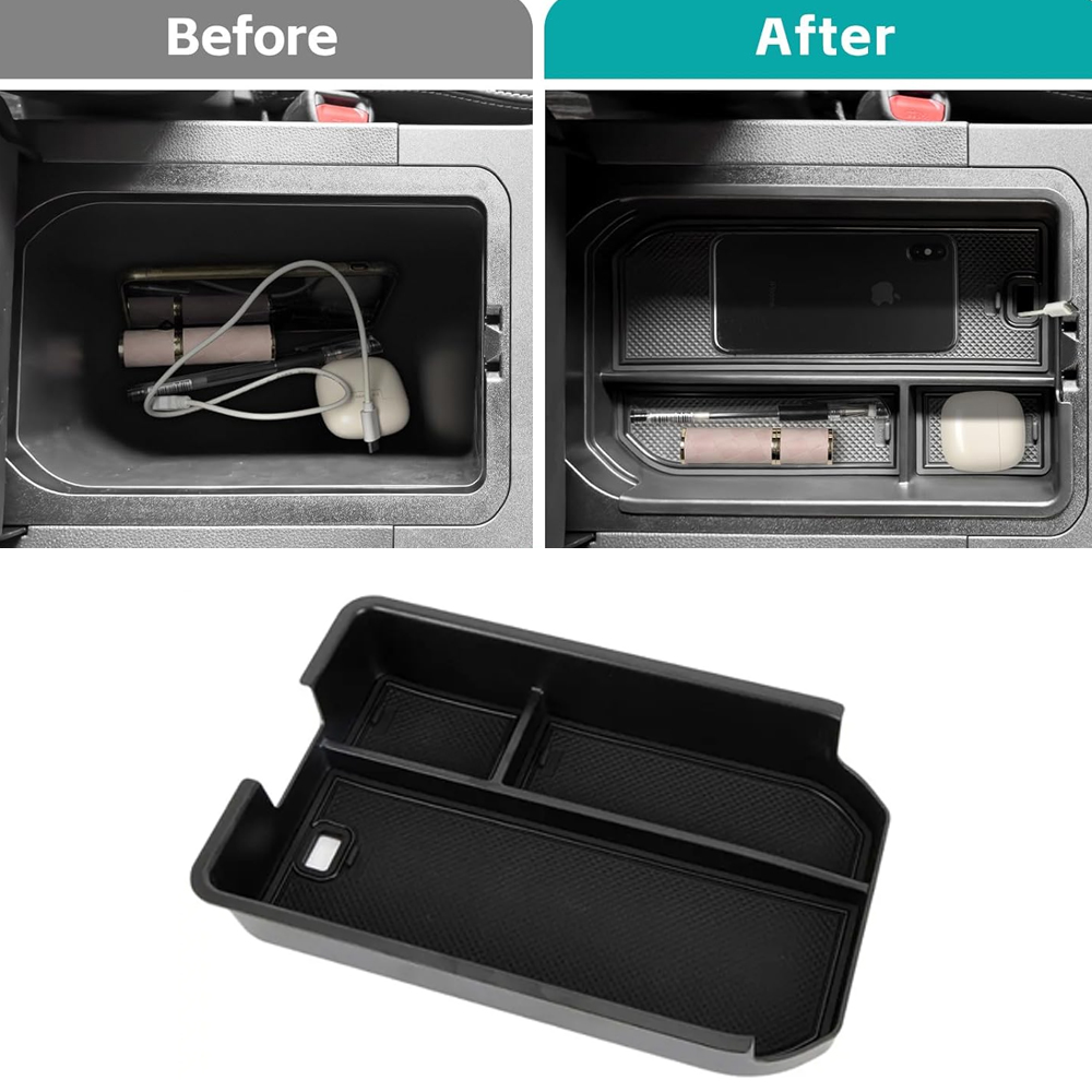 Easy Installation: Installing our storage tray is a breeze. Simply place it in the center console of your vehicle, and it will fit snugly without any modifications or tools required.