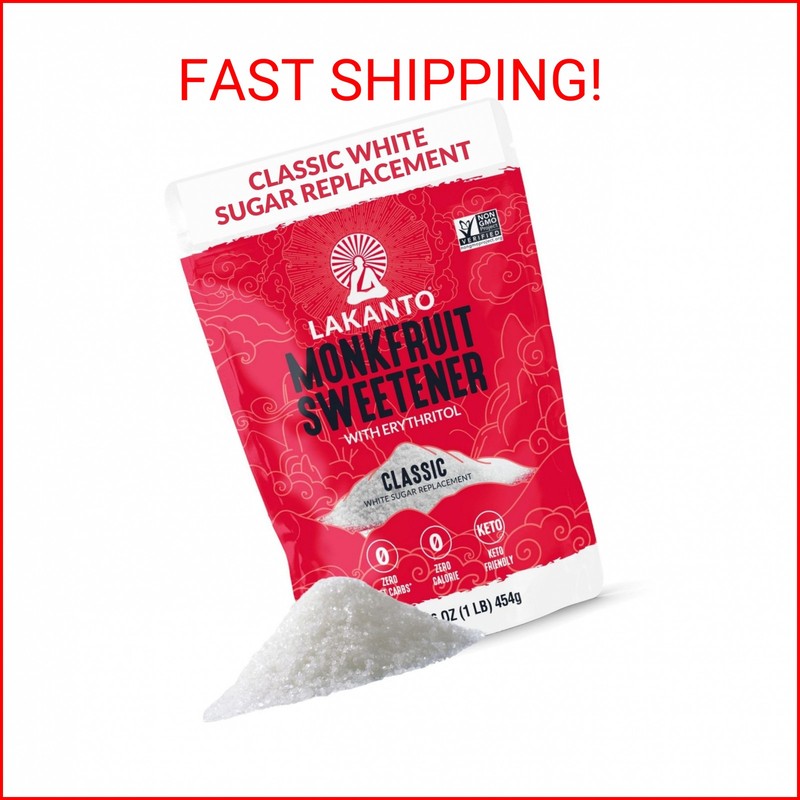 - MONKFRUIT INFUSED SWEETNESS WITHOUT THE SUGAR: Lakanto Monkfruit Sweetener with Erythritol is your ideal white sugar substitute, delivering a texture and taste remarkably similar to white sugar without the calories. This sweetener dissolves effortlessly in liquids, performs reliably in baked goods, and provides the rich sweetness you love. Enjoy all the benefits of a sugar replacement in a convenient 1 lb bag that’s perfect for all your baking, cooking, and beverage needs.