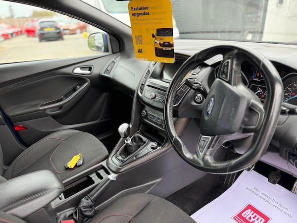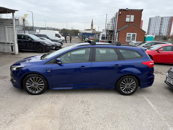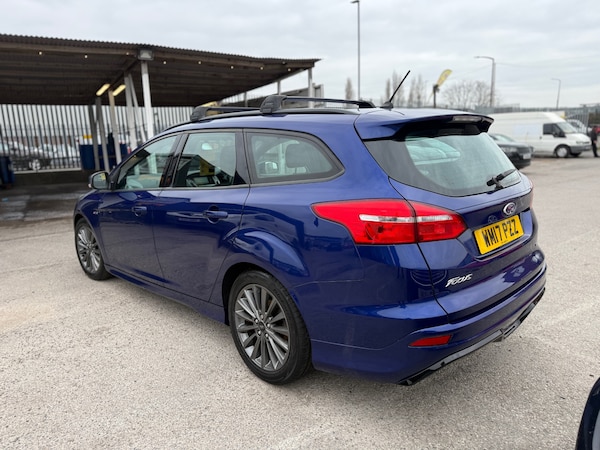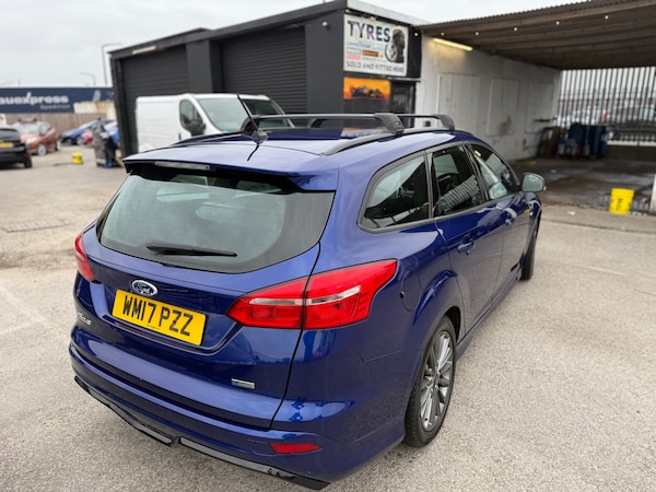 Stunning Ford Focus st line 1.0 ecoboost in performance blue stunning throughout partial service history brand new wetbelt with 3 years warranty part of our wet belt tech approved used programme the car is the highly desirable estate version with plastic load liner cover isofix rear seats the car will come with 3 months warranty so buy with confidence from the largest ecoboost specialist This 2017 Ford Focus ST-Line is a well maintained example, having had only two owners from new. It features a responsive 1.0 litre petrol engine and meets Euro 6 emissions standards. Inside, you'll find an 8 inch TFT touchscreen complete with Ford SYNC2, which includes Bluetooth connectivity for your convenience.This Focus ST-Line offers excellent running costs, achieving an impressive fuel economy of 59 miles per gallon. Its low CO2 emissions and low insurance group rating further highlight its cost effectiveness compared to other vehicles in its class, making it a sensible choice for many drivers.