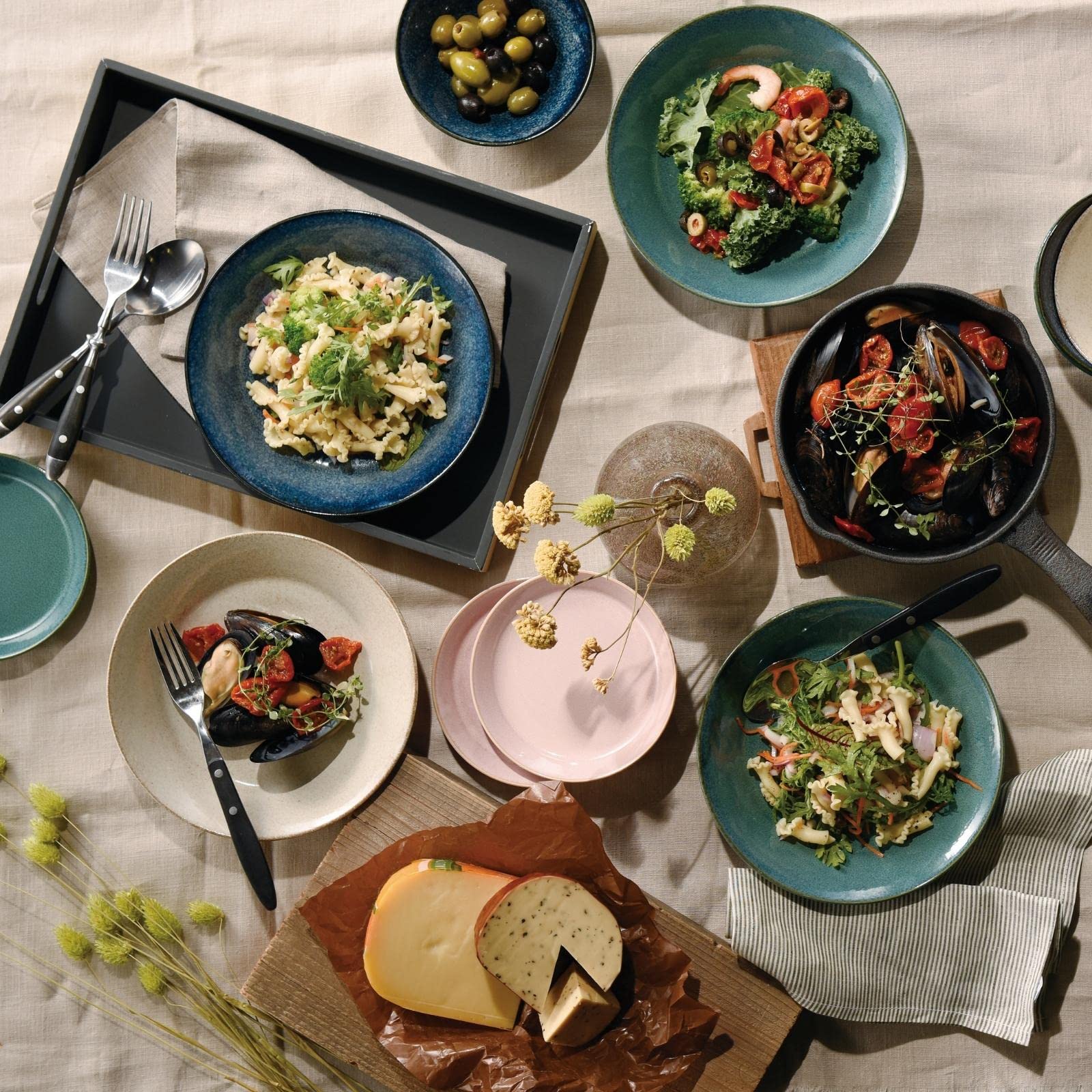 Size: Pasta plate - approx. diameter 20.7cm, height 3.8cm, bowl - approx. diameter 13.5cm, height 5cm, 14-plate - approx. diameter 14.3cm, height 2.1cm, mug - approx. diameter 9cm, height 8cm, pack bowl - approx. diameter 10.8cm, height 5.6cm, wooden spoon - approx. length 15.5cm. Capacity: Pack bowl - 300ml. Set contents: Pasta plate, bowl, 14-plate, mug, pack bowl, wooden spoon. Packing size: 35 x 30 x 20 cm.