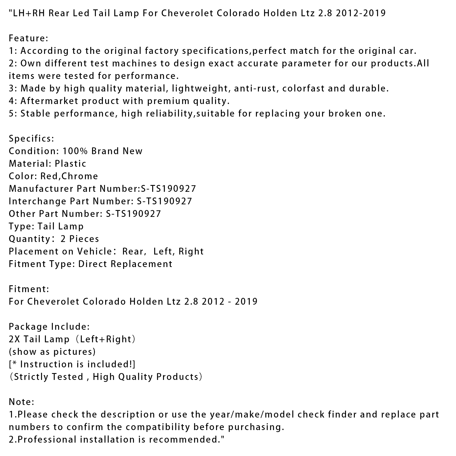 For tem not as described, provide details and photos to help us assist you promptly.