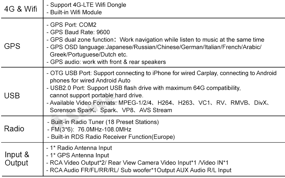 Digital Audio Broadcasting enables you to enjoy national music with your local known and new channels. CD Sound quality and silence with excellent transmission make DAB radio a special experience in the vehicle. (If Needed, Please contact us to buy DAB+ BOX.)