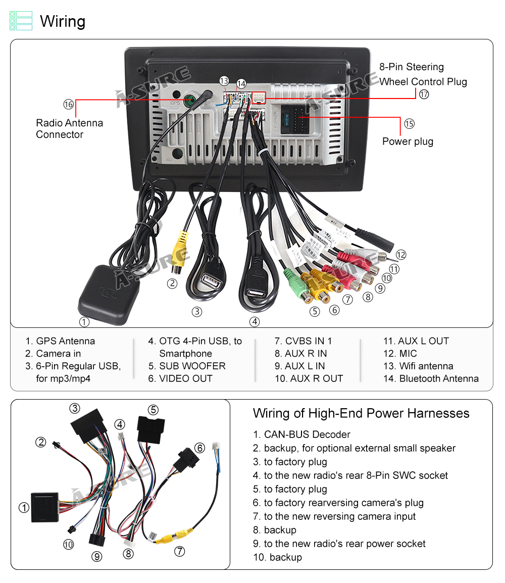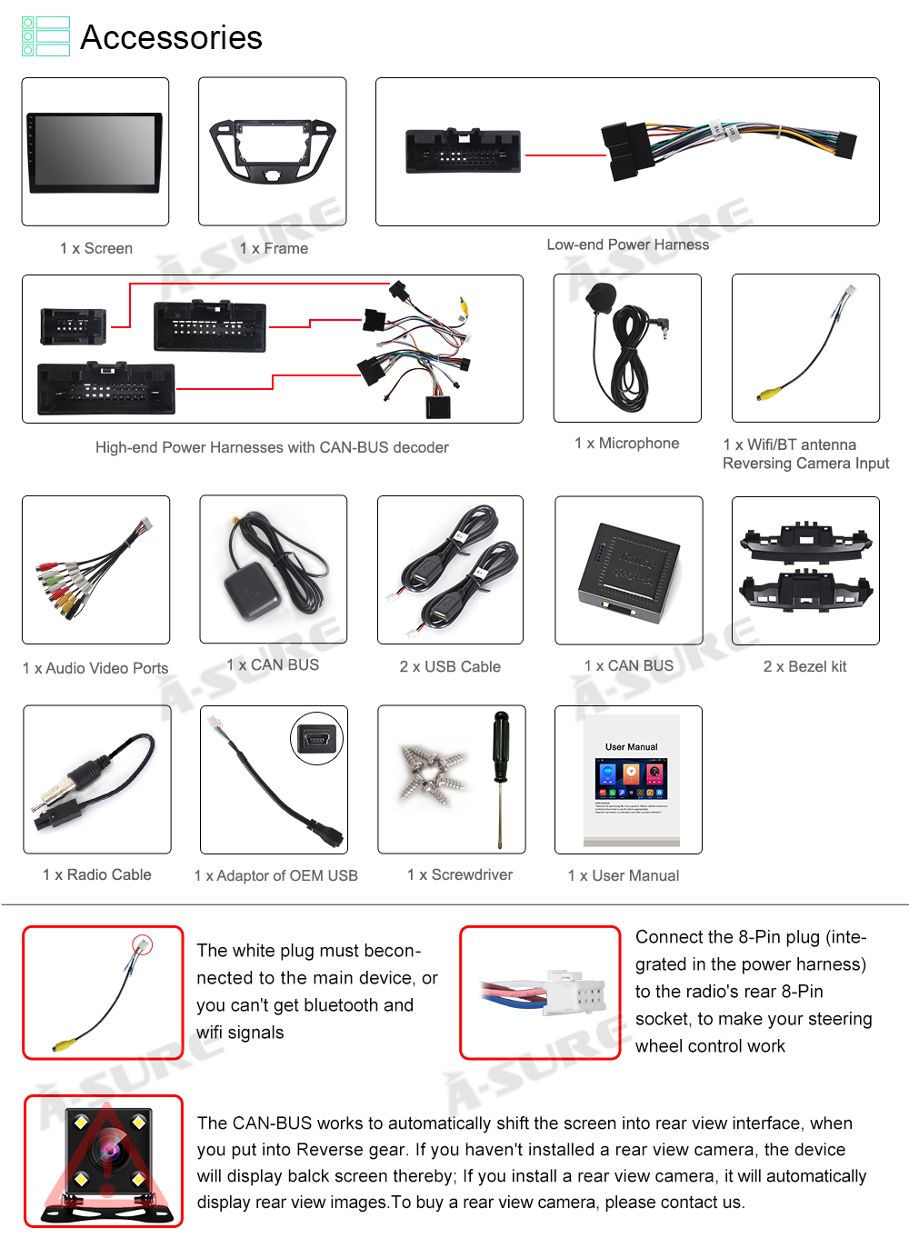 1 x Wif BT Antenna Rear Camera Input