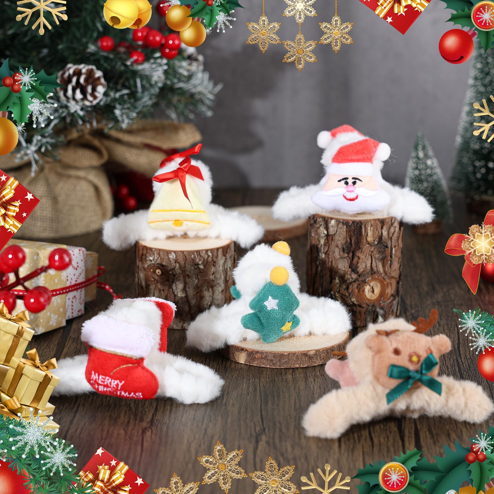 - 【Package Includes】Christmas faux fur plush hair clips set of 6 for thick curly hair catch accesories, enough for you to use and replace, and to share with friends.