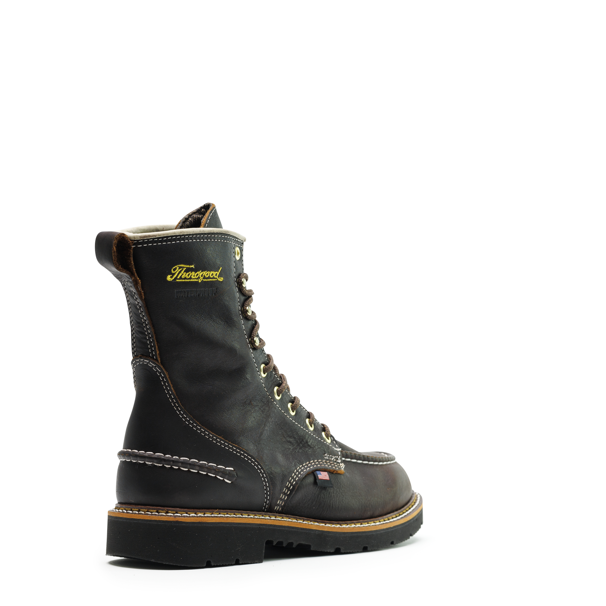 With the Thorogood Flyway USA 8" moc design soft toe work boot, you will not have to miss work due to wet weather conditions. The removable Ultimate Shock Absorption™ footbed provides all-day comfort, while the breathable X-Stream Waterproof™ membrane keep your feet dry and blister-free.