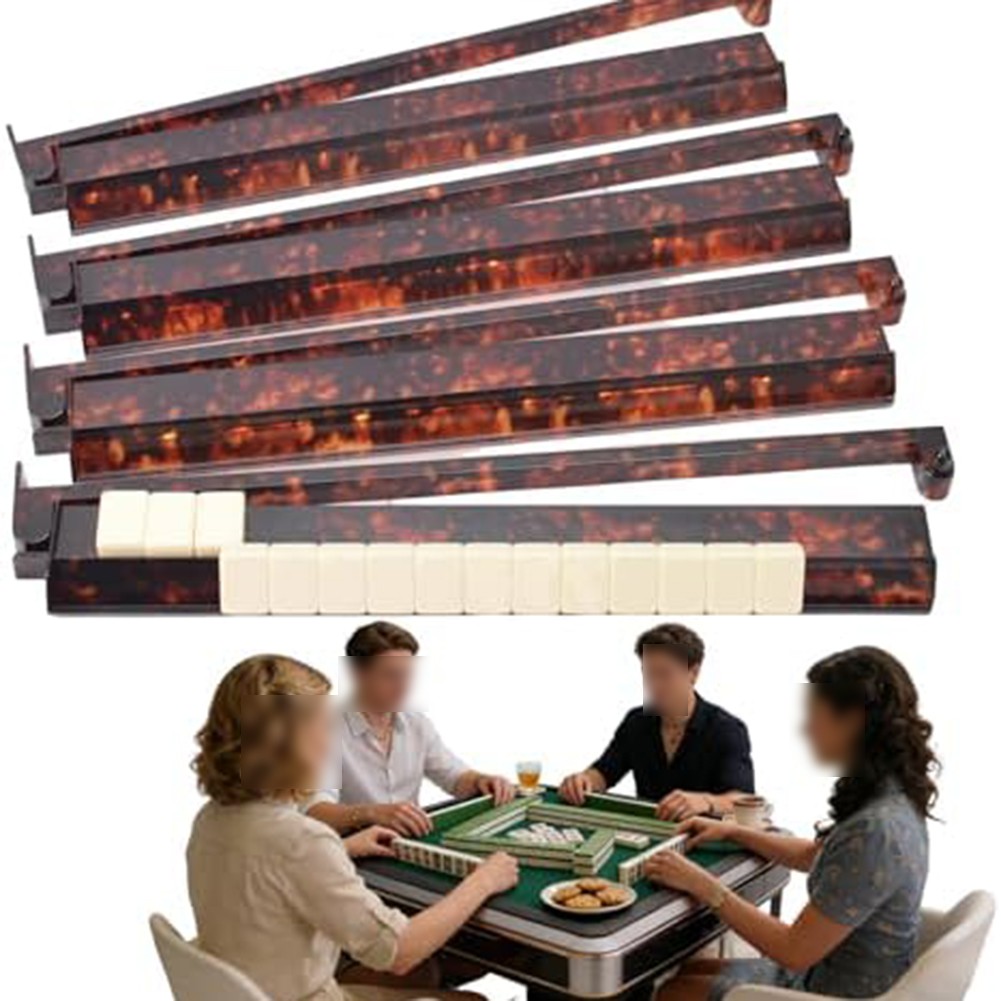 Tortoise Shell Pattern Acrylic Mahjong Racks 4PCS with Gliding Pushers