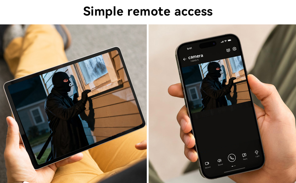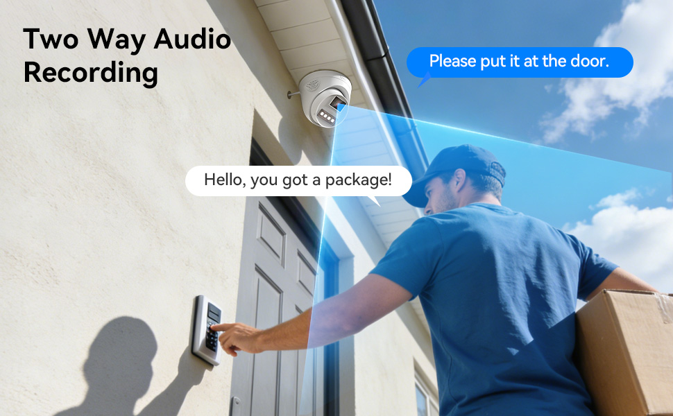 2-Way Audio with Built-in Mic & Speaker Communicate with visitors, delivery personnel, or family members in real time directly from your phone. The built-in microphone and speaker let you hear and speak through the camera, perfect for greeting guests, instructing delivery, or deterring intruders.
