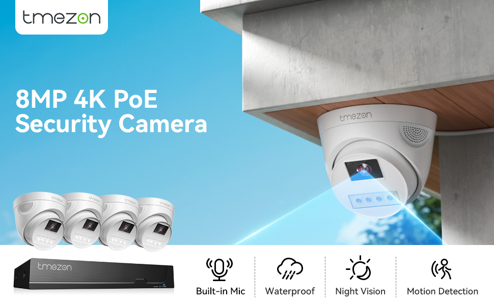Product Description Upgrade your home security with the TMEZON 8MP 4K PoE Security Camera System, the ultimate solution for crystal-clear, reliable surveillance for your home, office, or business. This complete kit delivers professional-grade 4K Ultra HD video, smart AI detection, and easy remote access, so you can monitor your property anytime, anywhere with total peace of mind.
