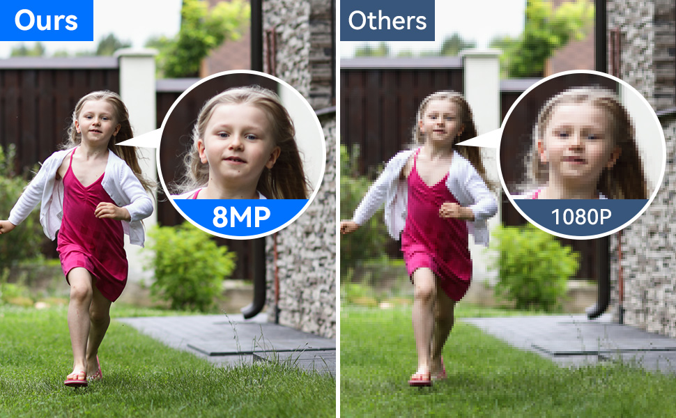 8MP 4K Ultra HD Resolution Capture every detail with stunning 3840×2160 4K resolution (4x the clarity of 1080P). The high-sensitivity sensor delivers sharp, vivid footage day and night, so you can clearly identify faces, license plates, and package details, even in low light.