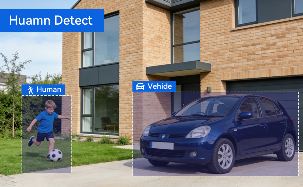 AI Human & Vehicle Detection Eliminate false alarms with intelligent AI analytics. The system automatically distinguishes between humans and vehicles, sending you accurate alerts only when it matters, so you never miss a critical event while avoiding unnecessary notifications from animals, trees, or weather.