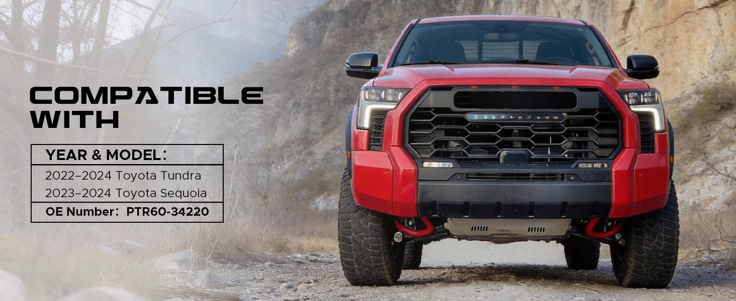 Plug & Play for Your Ride: Compatible with 2022-2024 Toyota Tundra & 2023-2024 Sequoia, VRC's front skid plate uses OE mounting holes for an effortless fit. Get full coverage, secure installation, and complete underbody protection without any guesswork
