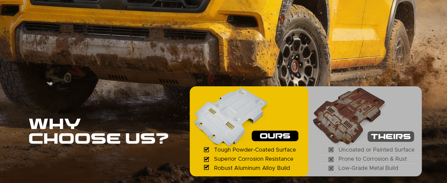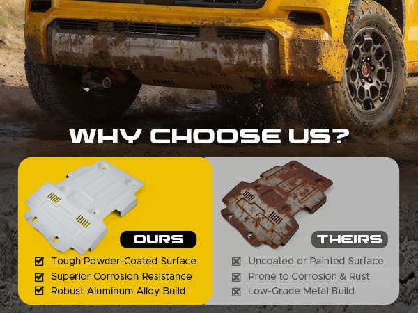 Corrosion Can't Touch This: Our powder-coated surface passes 72-hour salt spray tests, providing superior corrosion resistance & lasting strength. It keeps your underbody guard looking new and performing reliably in wet, salty, or humid environments