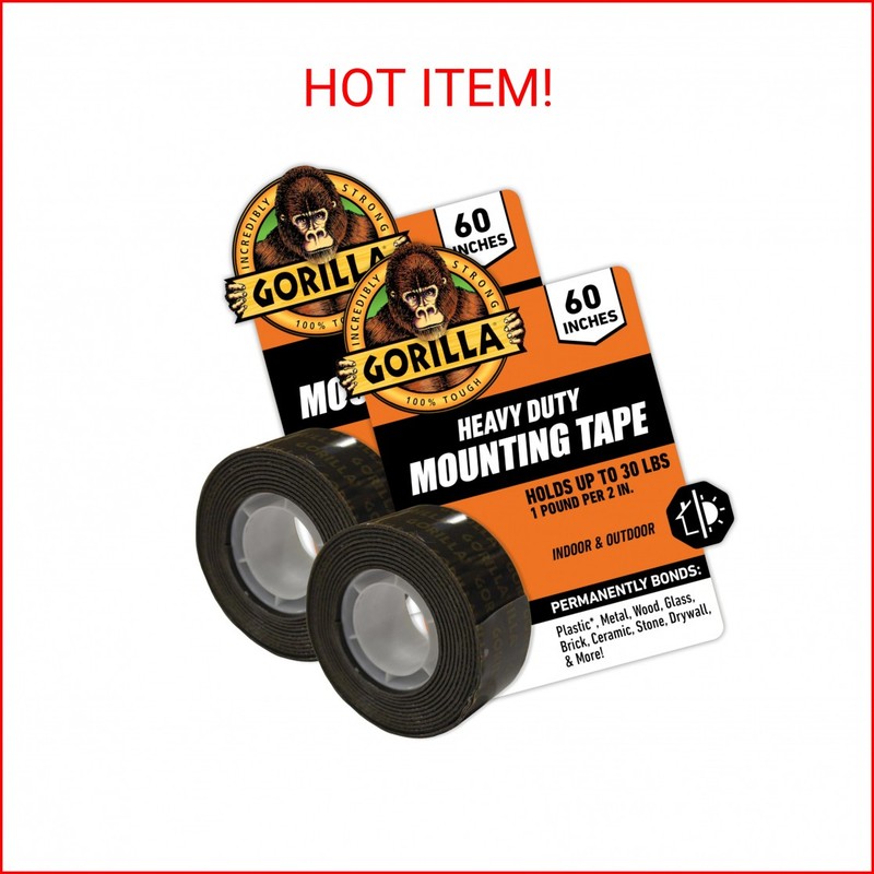 Gorilla Heavy Duty Double Sided Mounting Tape, Weatherproof, 1 inch x 60 inch, Black (Pack of 2)