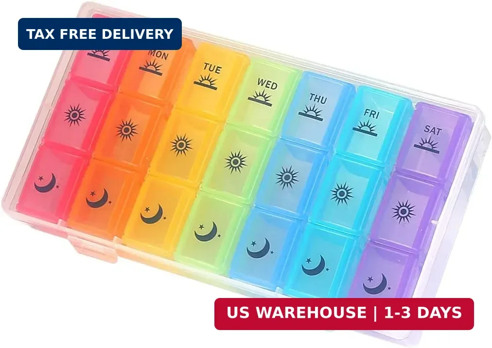 Weekly Pill Organizer,3-Times-A-Day 7 Day Pill Box Large Compartments Moisture-P