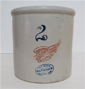 DESCRIPTION: .... Greetings! Thanks for stopping in, up for sale for your Consideration: ~~ Vintage Red Wing Union Stoneware Crock 2-Gal BIG Wing ~~
