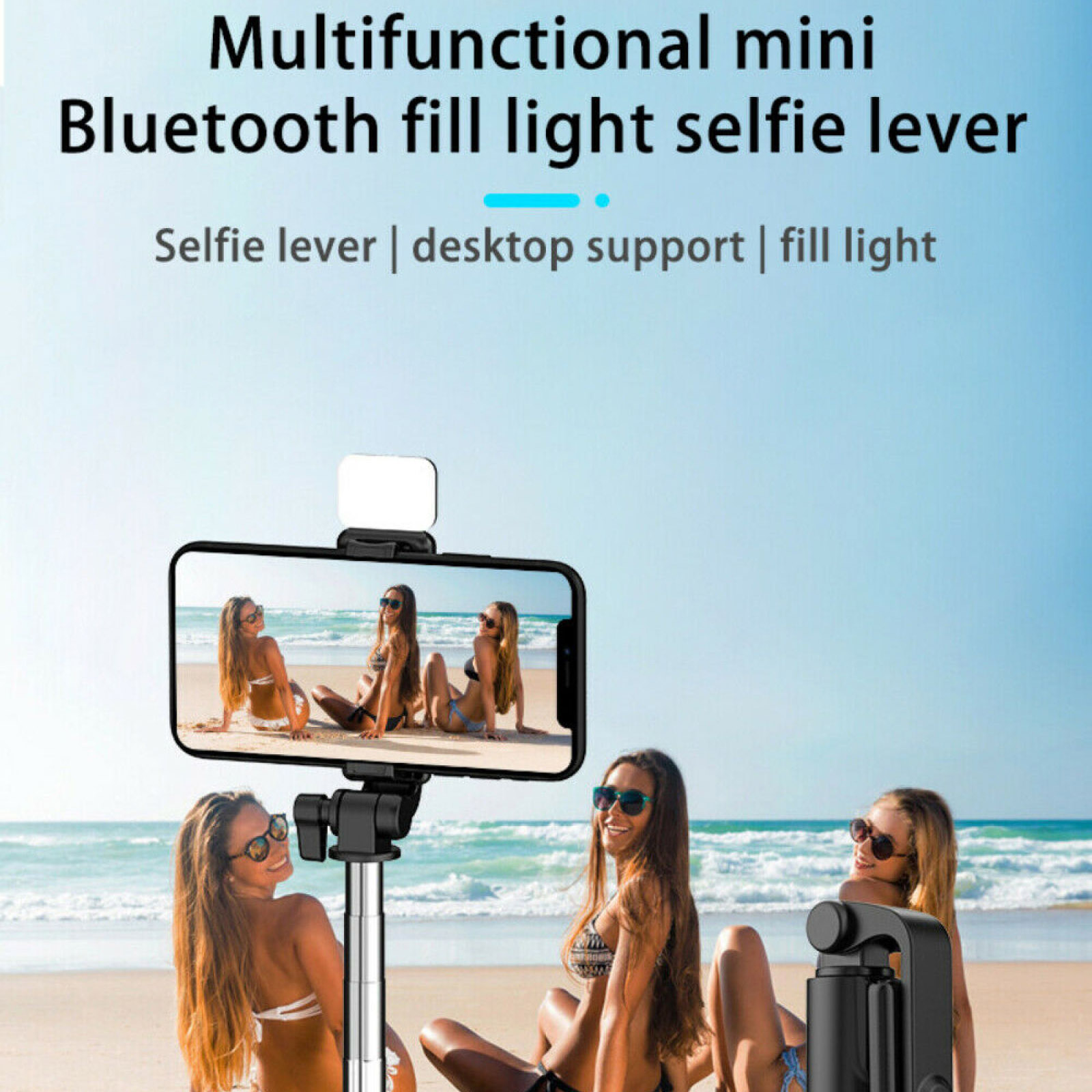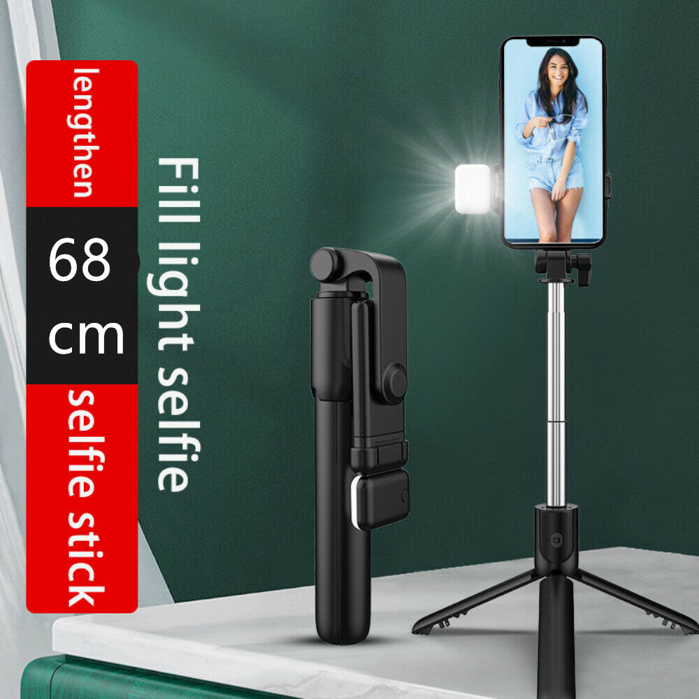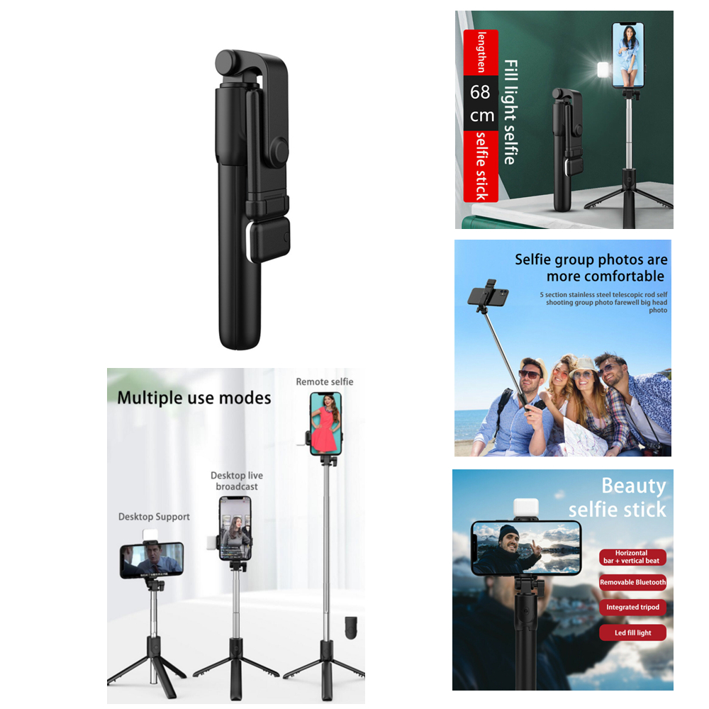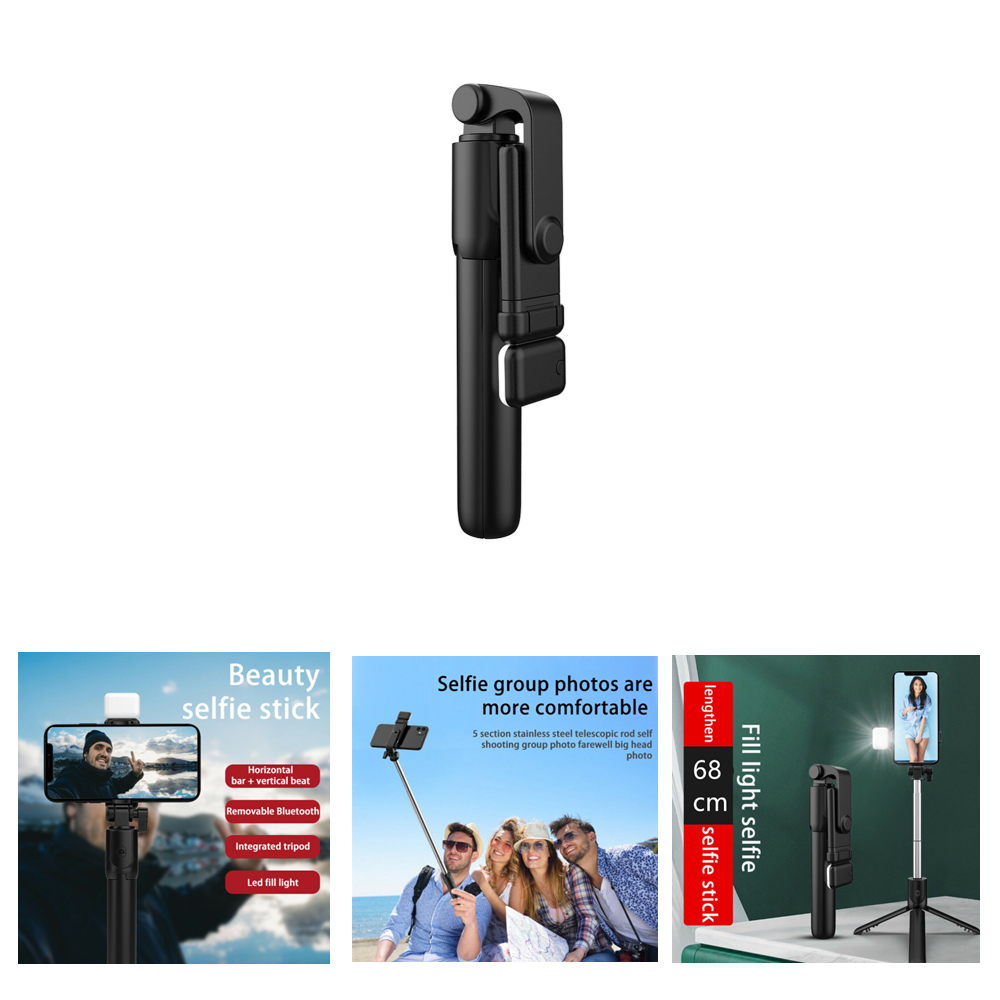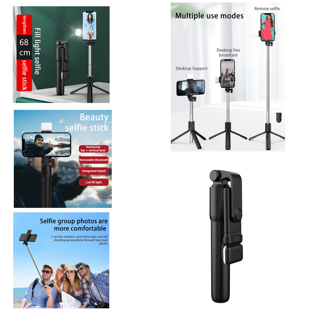 Self-timer stand is multifunctional, foldable, with a triangular bracket at the bottom, and equipped with Bluetooth self-timer remote control. One person can also take a full-body photo. We have designed a fill light and a fill light, which can be chosen by oneself and taken on the plane.