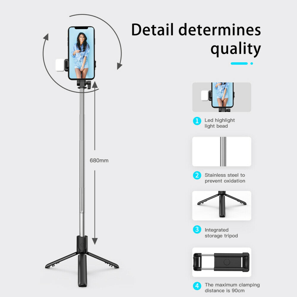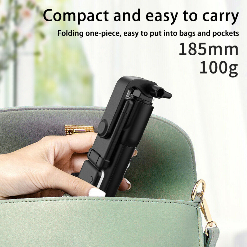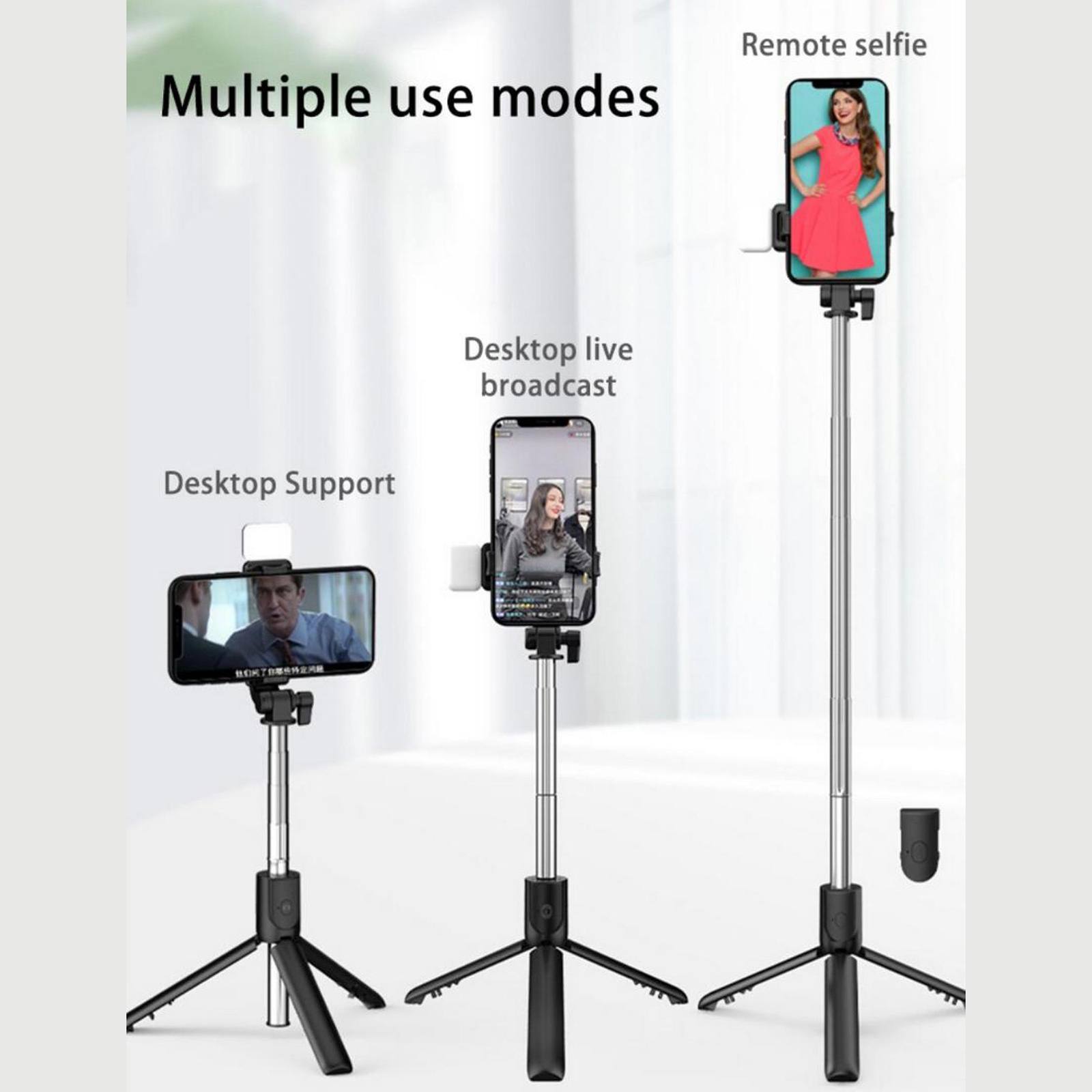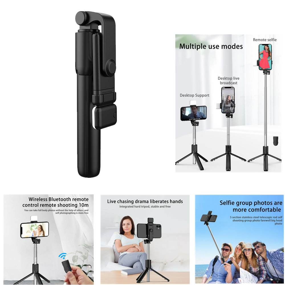 Self-timer stand is multifunctional, foldable, with a triangular bracket at the bottom, and equipped with Bluetooth self-timer remote control. One person can also take a full-body photo. We have designed a fill light and a fill light, which can be chosen by oneself and taken on the plane.