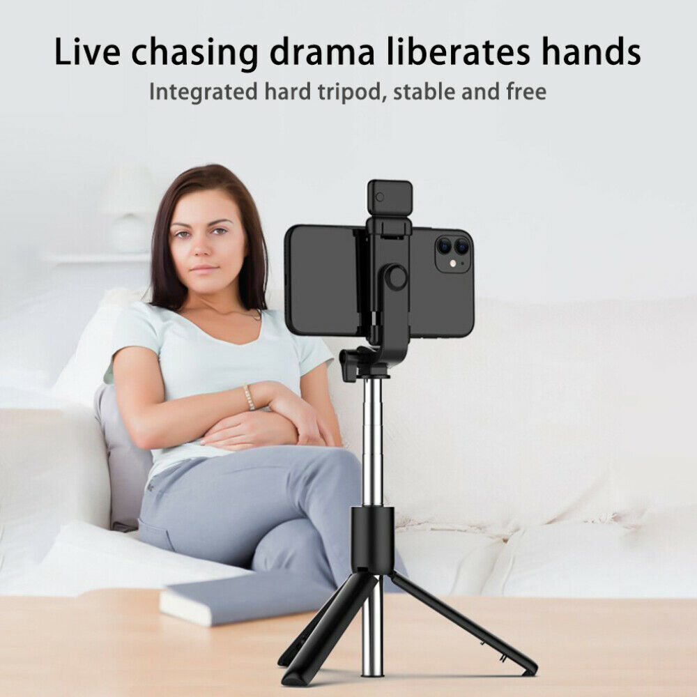 Simple, convenient, light and multifunctional 3-in-1 mobile phone stand selfie stick, which can be opened into a tripod at the bottom, has stable structure and is made of alloy and will not rust.