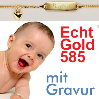1 hochwertiges Baby & Kinder Geburtsarmband ( Identitäts-/ Schildarmband ) aus ECHT GOLD 585 (14 Kt / 14 Karat) Gelbgold mit kleinem Herzanhänger