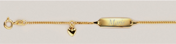 Abmessungen: klassiches Panzerketten-Goldarmband Breite ca. 1,4 mm, mit sicheren Federring-Verschluß (Gold 585), Gesamtlänge: 14 cm (12+2 cm); Gravurplatte: ca. Höhe 5 mm / Länge 20 mm; gewicht ca. 1,9 Gr.