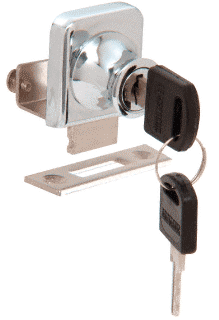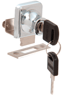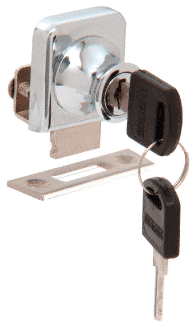 This CRL Lock for 3/8" (10 mm) Single Doors adds style and security to display cabinets and showcases with glass doors. Lock installation requires no drilling, and they are designed to be used with 3/8" (10 mm) thick glass. Locks come complete with two keys and strike plate. Screws for installing strike plate are not included. Customers needing extra blank keys can order Cat. No. LKEY.