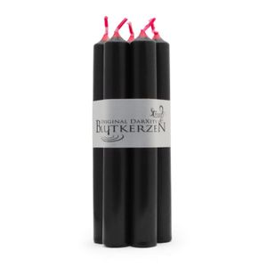 Das Besondere: Diese schwarzen Stabkerzen sind im Inneren rot durchgefärbt.
