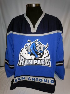 OFFICIAL JERSEY OF THE AHL! Authentic on ice game issued San Antonio Rampage AHL hockey jersey obtained from team source, includes team patches, SP patch, AHL patch, fight strap, never worn or numbered. Available in sizes 58 and 60G (goalie style) while they last!
