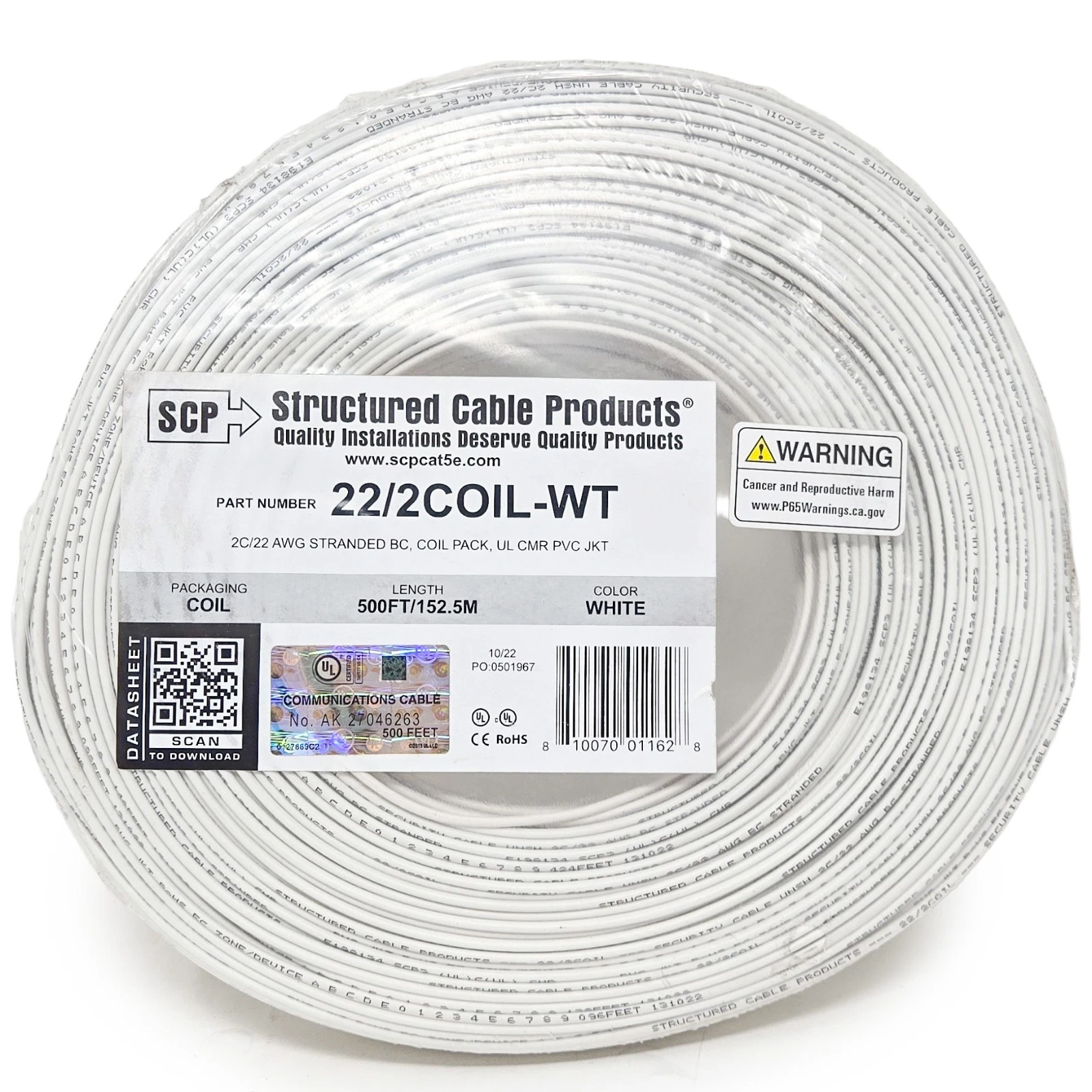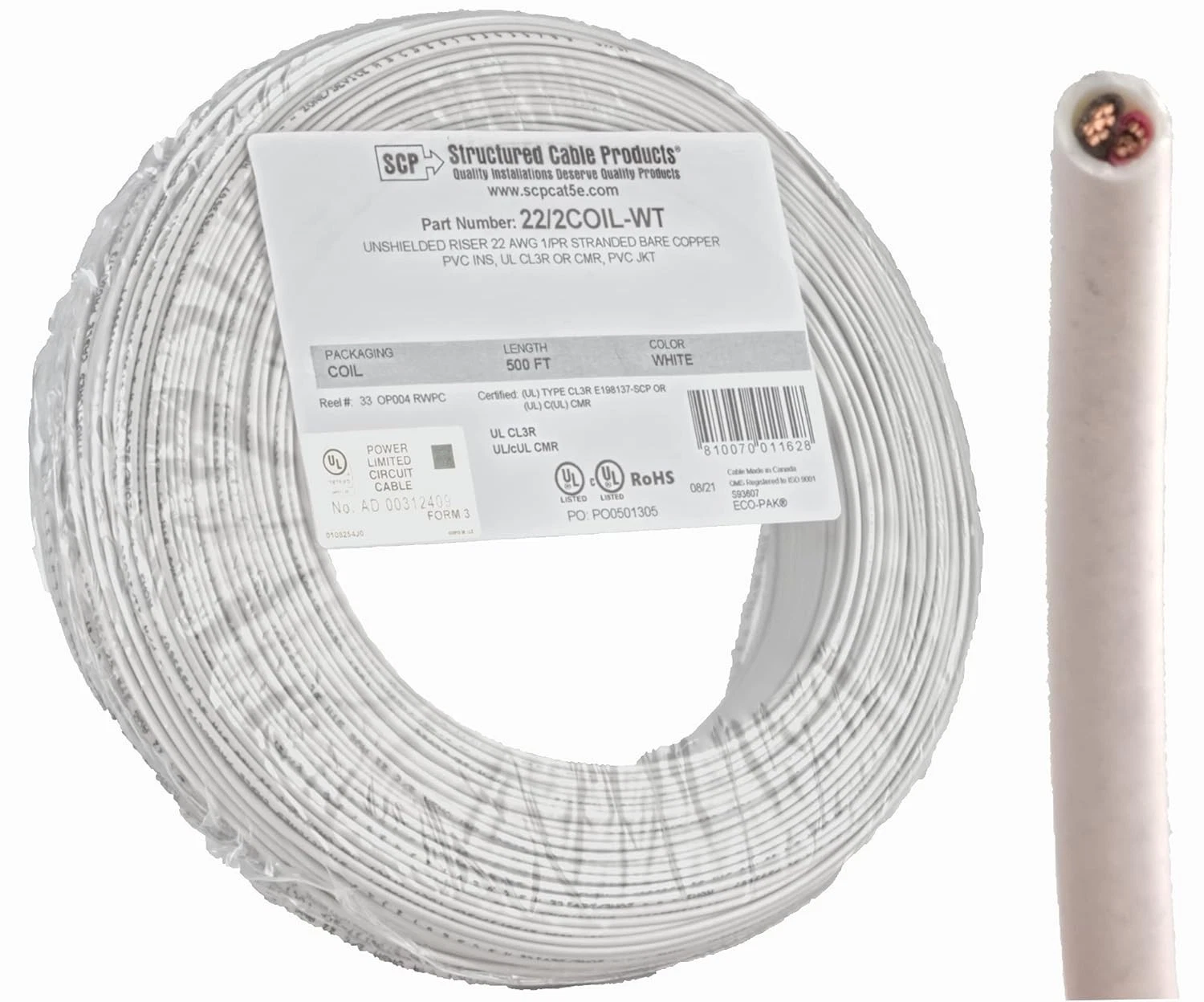 Stranded Copper, 22 Gauge 2 Conductor, 500’ White