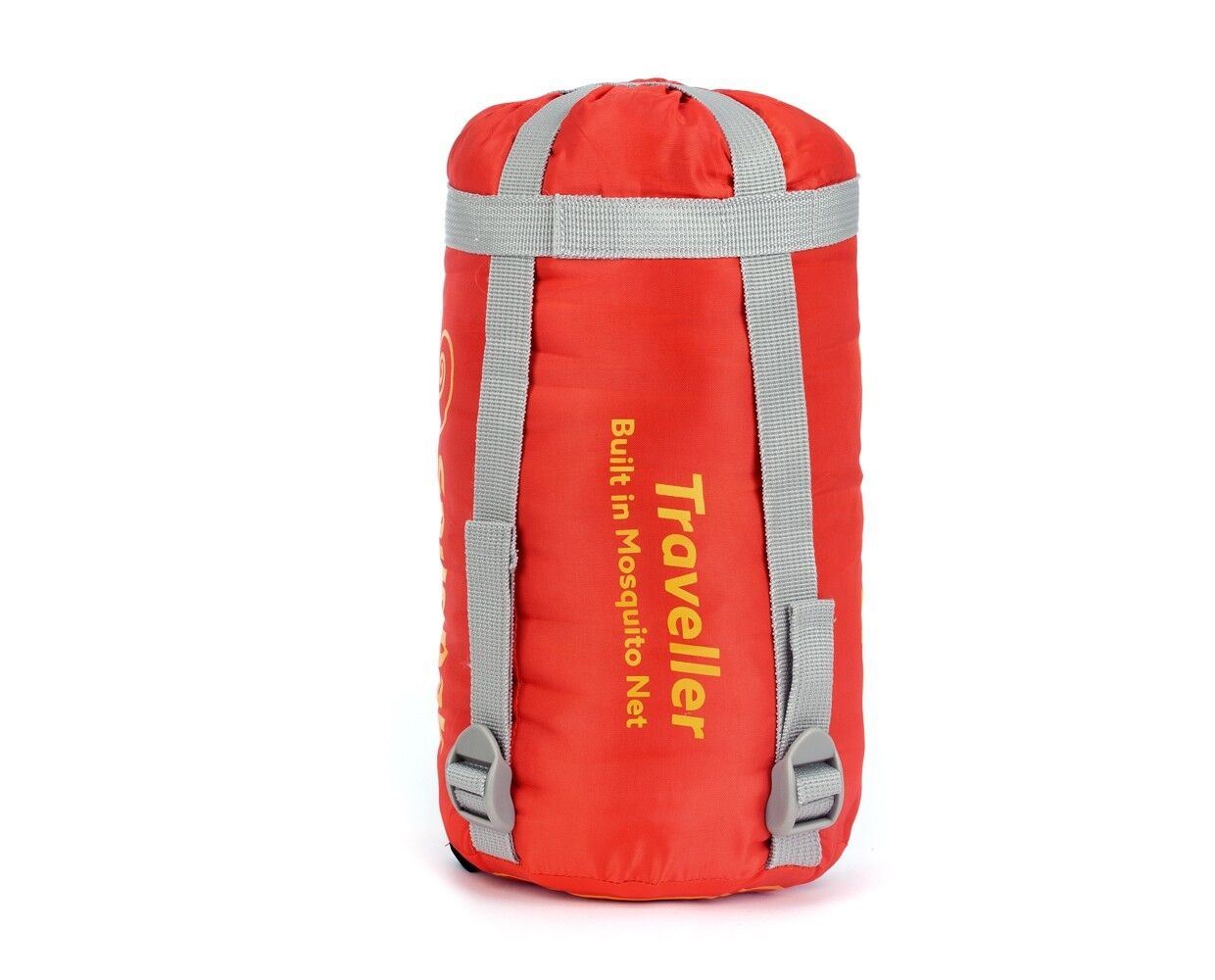 The Travelpak Traveller can be opened up into a quilt for more versatility when travelling and comes complete with a concealed roll away mosquito net which can be zipped over the face sealing the sleeping bag not only from mosquitoes but all sorts of creepy crawly insects!