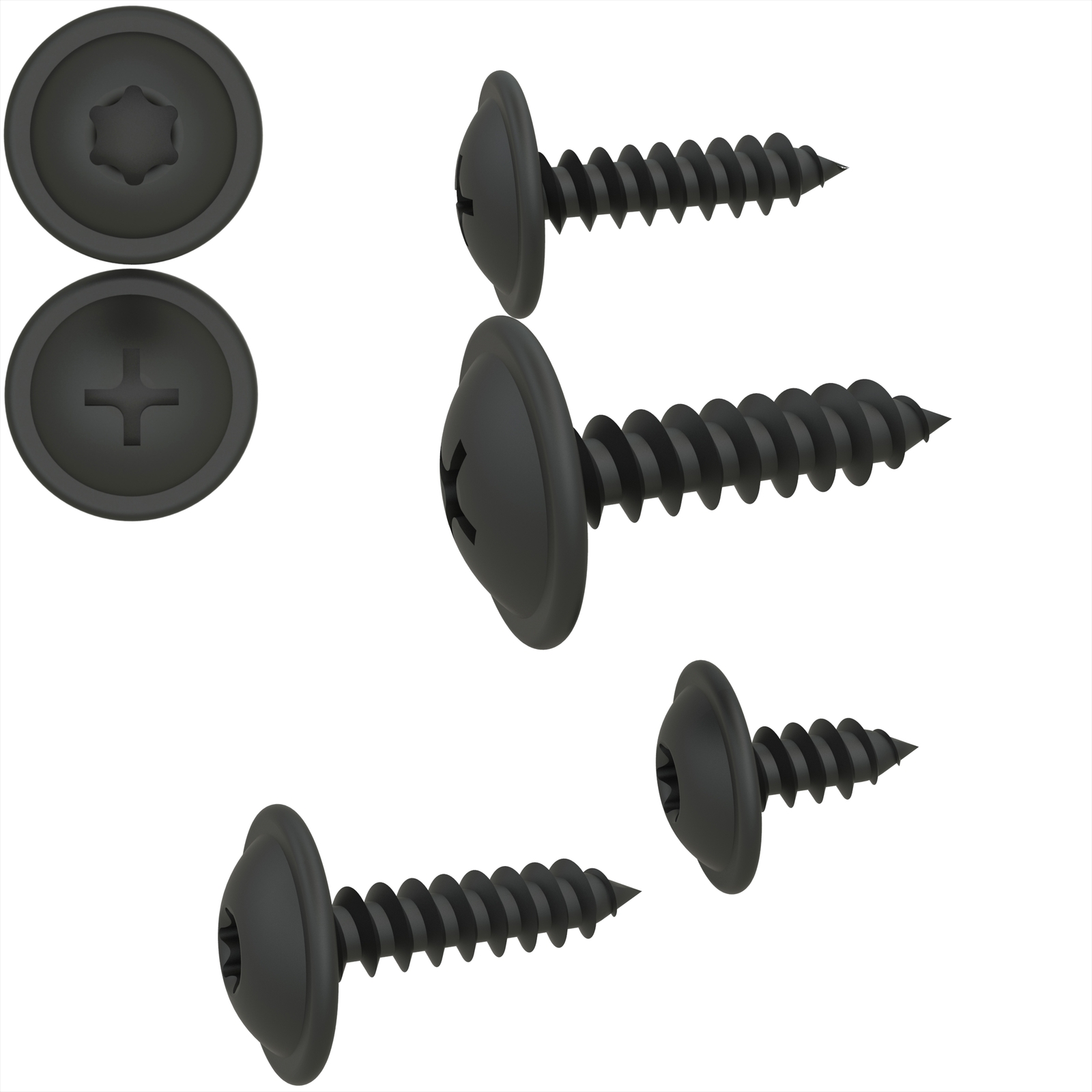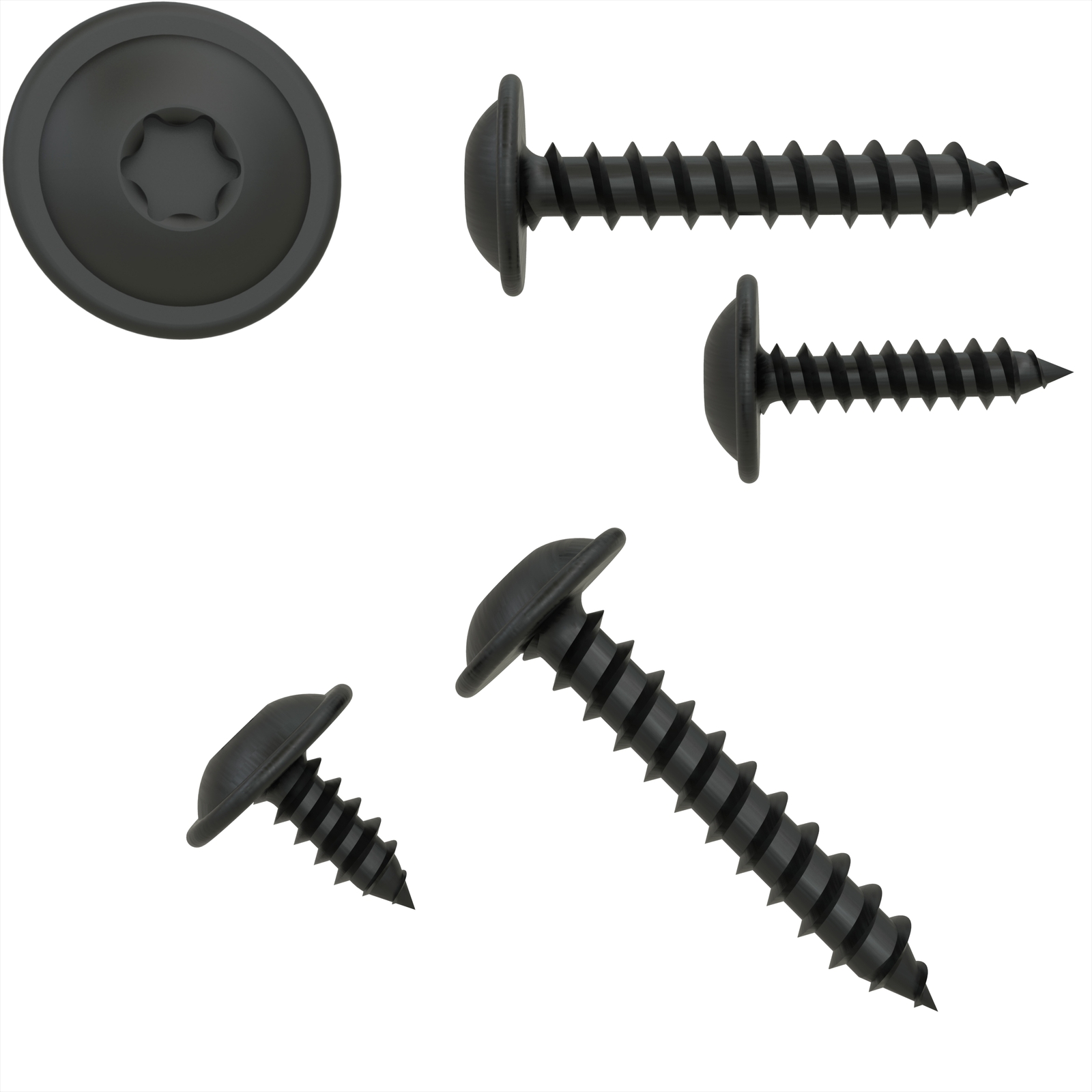Blechschrauben Flachkopf mit Scheibe TORX schwarz verzinkt 3,9 - 4,8 mm DIN 7049
