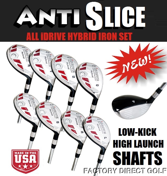 Up for auction is the Brand New Easier-to-Hit iDrive All Hybrid Iron Set that will replace your hard-to-hit traditional irons. The iDrive Hybrid irons provide the playability of a fairway wood with the accuracy of an iron. iDrive Hybrid irons are used anywhere irons are used. You can expect better trajectory, more consistency, and more distance than a well struck iron.