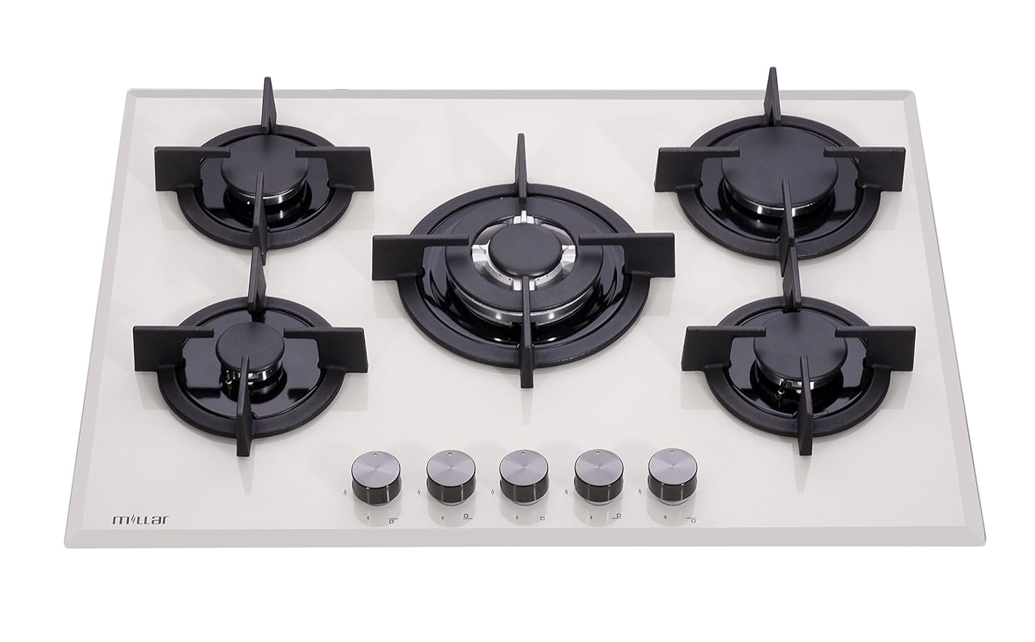Surface: 8mm cream tempered glass Burner cap: cast iron & matt Flame spreader: aluminium Injector holder: aluminium Injector: NG - copper/LPG - copper F.F.D: Spanish Orkli thermocouple Pan support: cast iron Knob: Black (Silver knobs available upon request) Complete with LPG conversion kit (injectors & connector fitting) Power Cable: 1m (UK Plug) Electrical Voltage: 220-240V