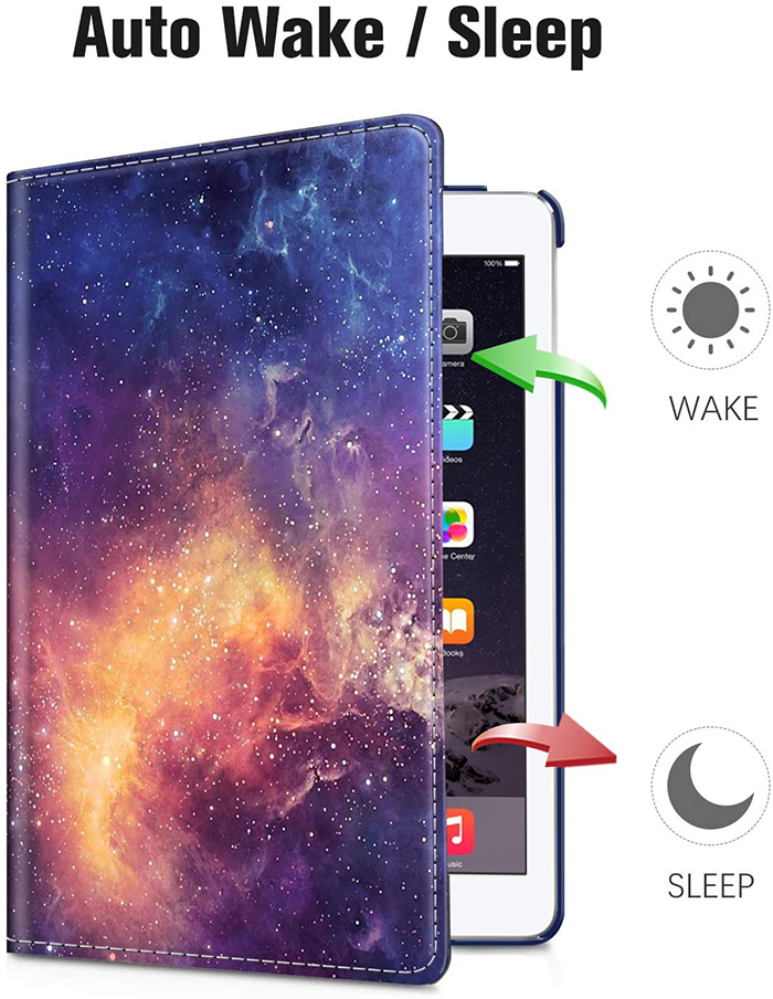- Durch den eingebauten magnetischen Streifen wird beim Öffnen/Schließen der Hülle der Ruhezustand automatisch aktiviert/deaktiviert, um Strom zu sparen.