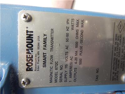 ROSEMOUNT MAGNETIC FLOW TRANSMITTER MODEL 8712CR12M4N5 115V AC 50/60HZ 1PH. OUTPUT4-20 MA 1000 OHMS MAX
