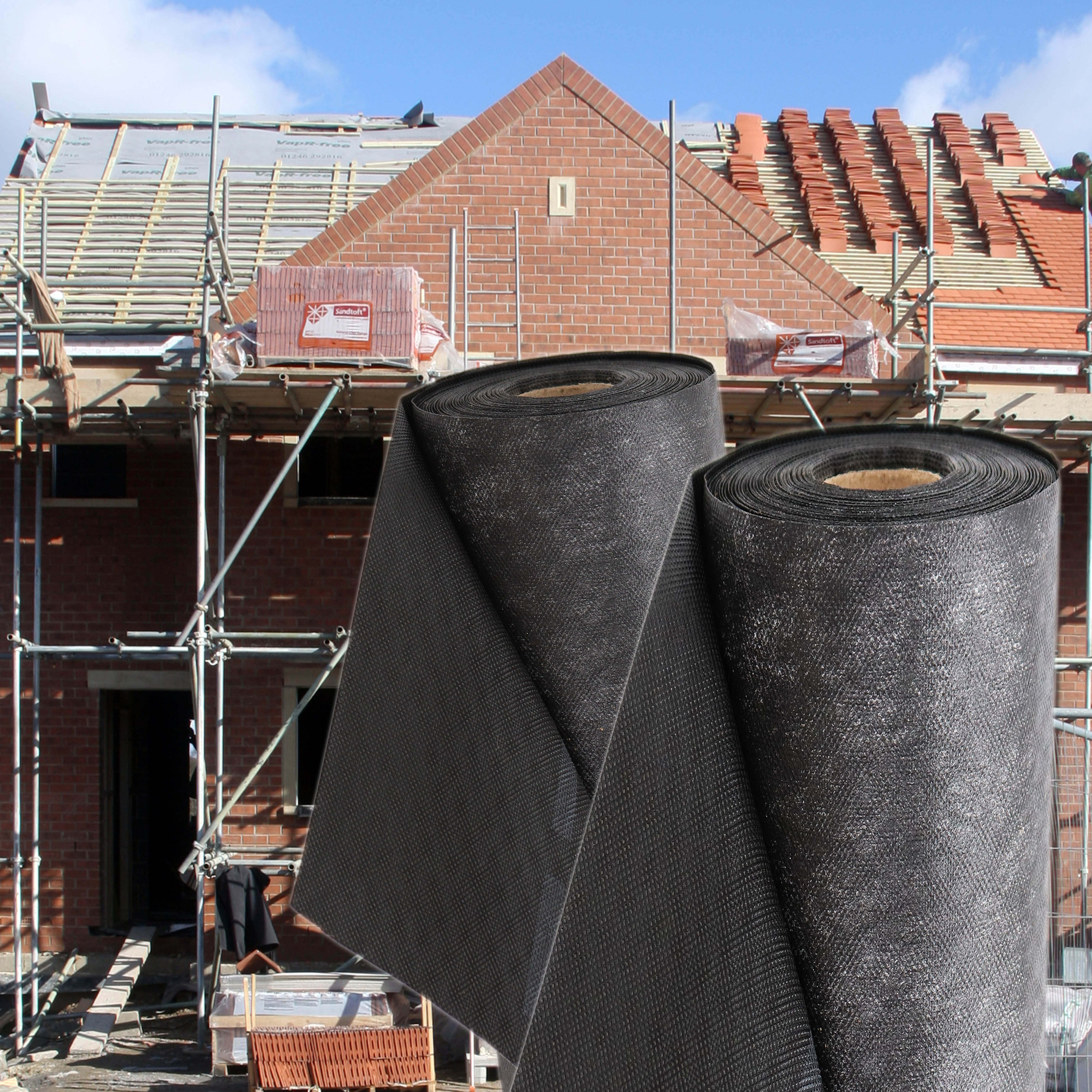 Bei der Unterspannbahn handelt es sich um eine 3-lagige, diffusionsoffene Dachbahn. Zwischen den beiden PP-Vlieslagen befindet sich eine atmungsaktive PE Membran. So ist die Bahn wasserdicht und gleichzeitig luftdurchlässig.