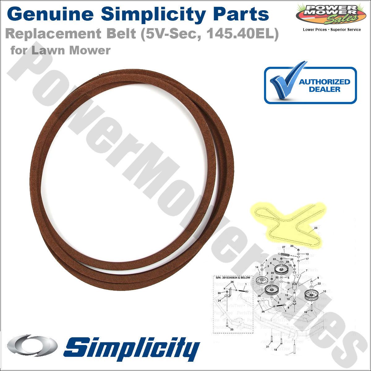 Simplicity Replacement Belt (5V-Sec, 145.40EL) for Lawn Mowers