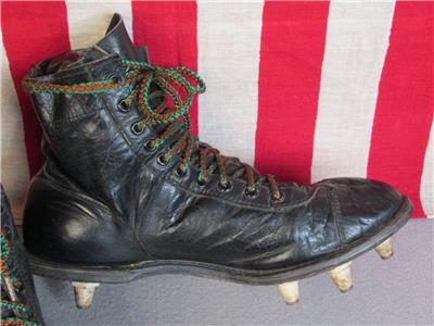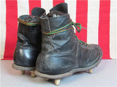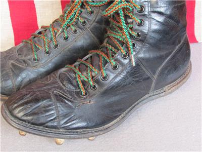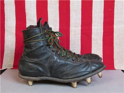 Vintage, Black Leather High-Top Football Shoes~Cleats.