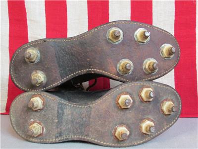 Hard leather, bottom sole. Hard plastic molded Cleats, with metal tips (removable)