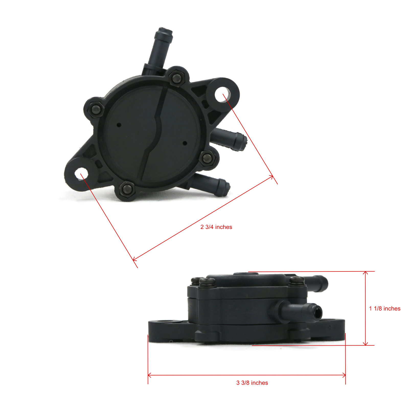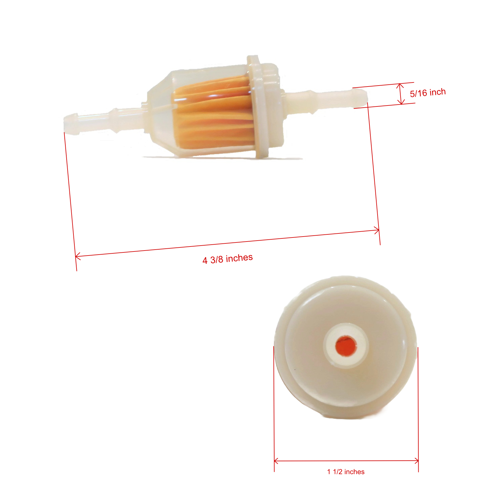 • Specs - Pump Bolt-on & Vacuum Type. Filter Fits Fuel Line: 1/4", 5/16" Inner Diameter. Color: Clear. Micron: 23-28. Refer to images 2 & 3 for more information