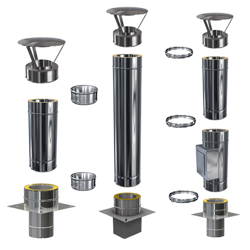 Mit diesen Einzelbauteilen können Sie sich Ihren eigenen doppelwandigen Edelstahlschornstein oder Schornsteinverlängerung(Kaminverlängerung) individuell zusammen stellen oder sich das passende Zubehör für Ihren vorhandenen doppelwandigen Edelstahlschornstein des (Hersteller Schornstein Olymp) mit einer Isolierstärke von 30 mm auswählen um Ihn zu erweitern.