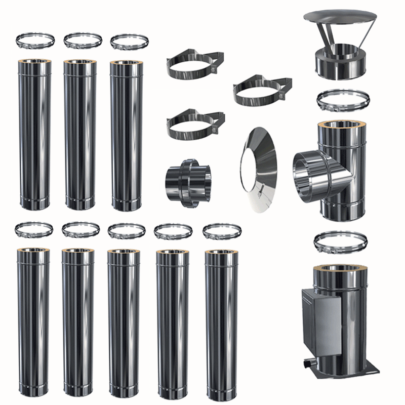 Edelstahlschornstein doppelwandig Zubehör Einzelteile Konfiguator DW Ø 80 - 200 mm Materialstärke 0,5 mm