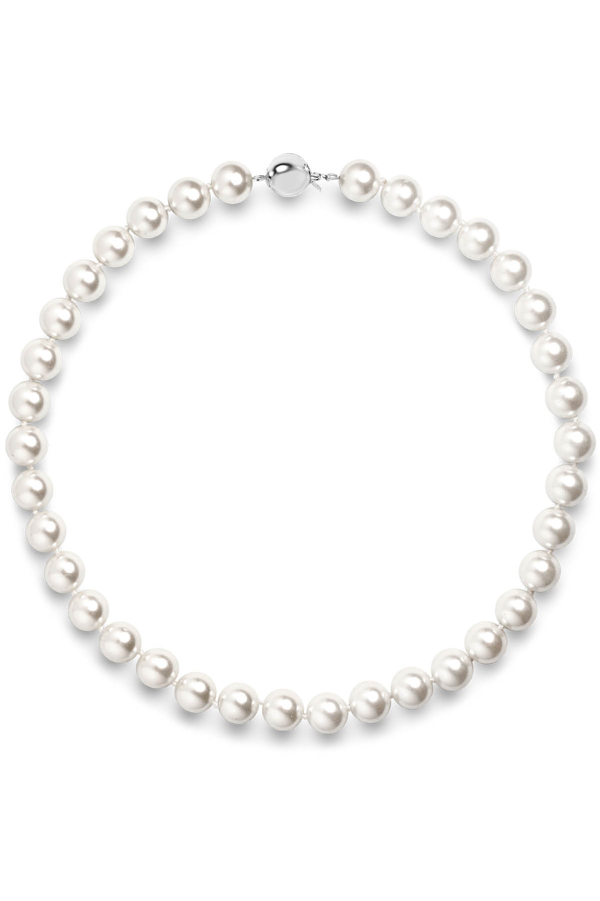 Cream White 10mm Simulated Faux Pearl Necklace Hand Knotted Strand 16" Inch
