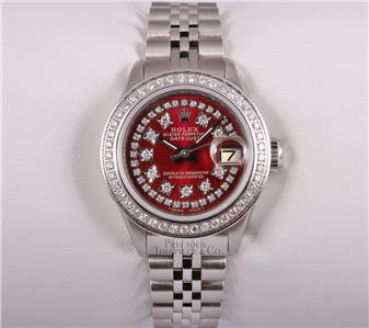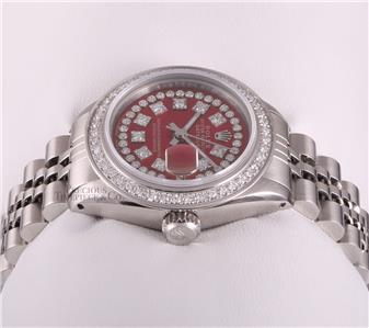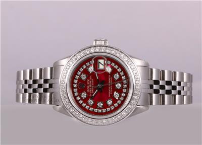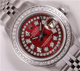 | DIAL | Custom Red Metallic Dial with String Diamonds & Diamond Hour Markers |