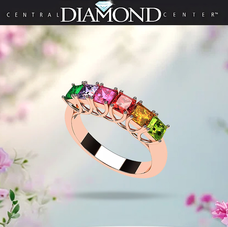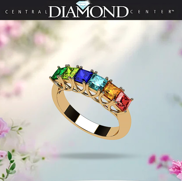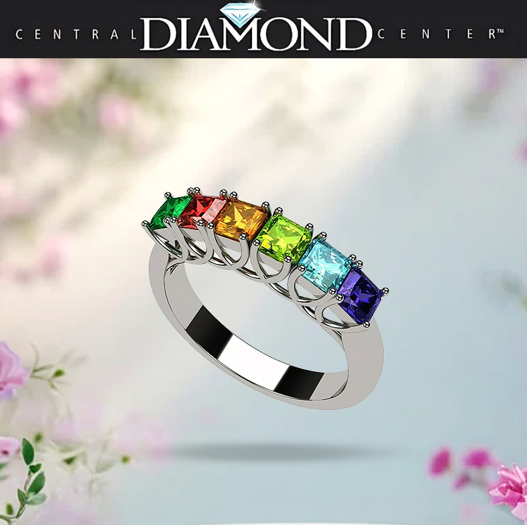 - This Mother's ring comes with your choice of 1 to 7 Asscher Cut Simulated Birthstones